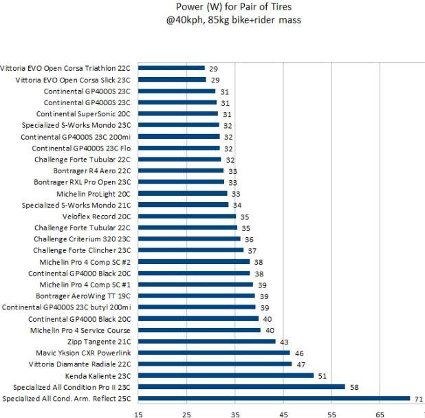 MP4SC: width=23.3, mass=202g, 'on road' Crr = .0043, Power for a pair @40kph=40W
