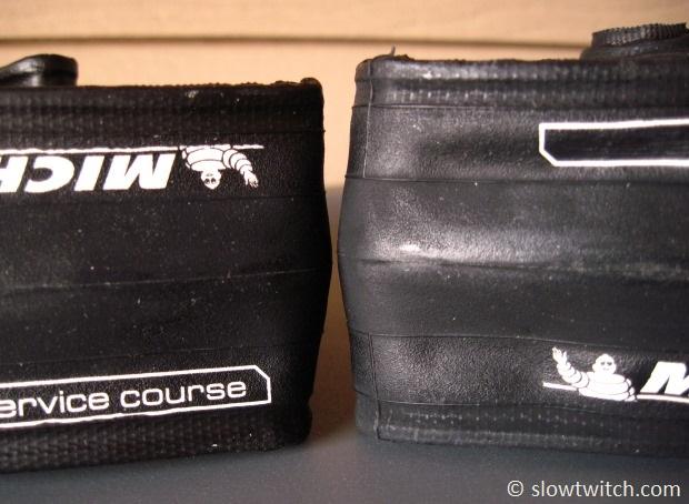 One of the first things I noticed, however, is that the width of the Service Course and Comp are not the same. Here is a comparison of the two tires – Comp on the left, SC on the right: