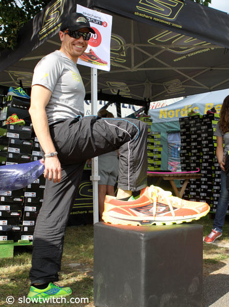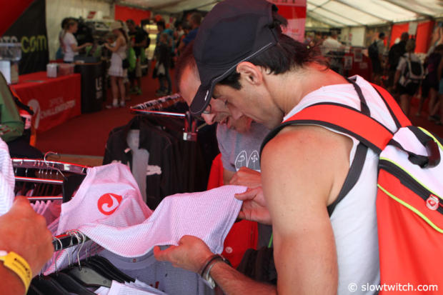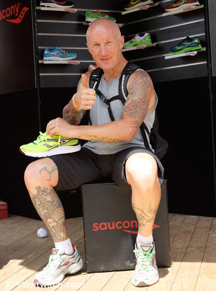 A happy customer in the Saucony booth. Not sure though when I last saw a Saucony booth at a US triathlon event.