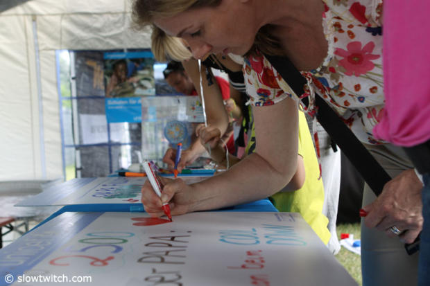 Writing inspirational signs for the athletes was a very popular activity today.