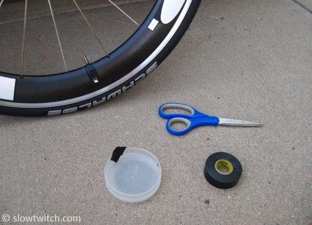 There is ONE thing that I should mention about this trick. You want to do it after inflating your tires. If the tires are totally flat (or close to it), you will push the valve down in to the rim as you install the pump head. That can mess up your tape.