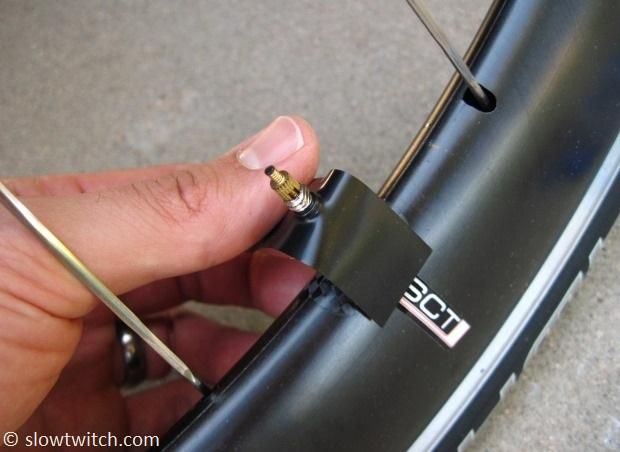 The problem is this: When you ride your bike with those fancy wheels, the valves often make a rattle noise. As you ride along – especially on rough pavement – the bike vibrates slightly. Sometimes you’ll get a ‘tick-tick-tick’ – one for each wheel revolution – as the valve taps the rim. Sometimes it will rattle constantly.