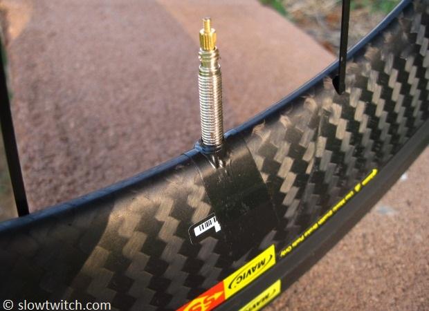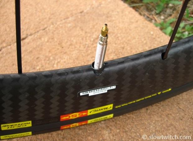 For example, here is the valve on a new Mavic CXR60 C wheel. Notice how big the molded-in valve opening is: