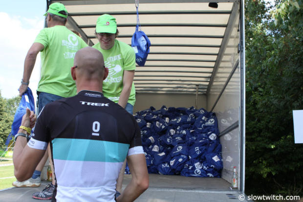 Saturday in Roth is bike check-in day and starting at 1pm a constant flood of athletes poured into T1 to drop off their bikes and helmets for the big race tomorrow. We have a small selection of images here and will have more on the slowtwitch Facebook page.