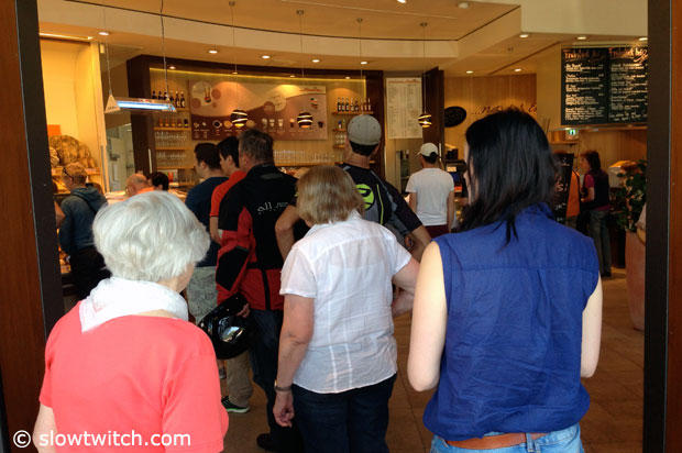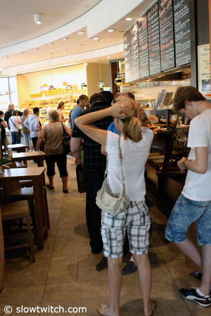The lines going into this Cafe Bäckerei Schmidt look similar to those at Island Lava Java.