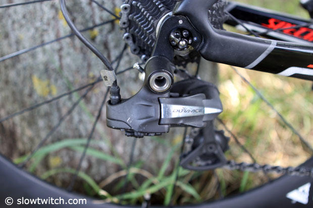Shimano Dura-Ace Di2 derailleurs in the rear and up front.