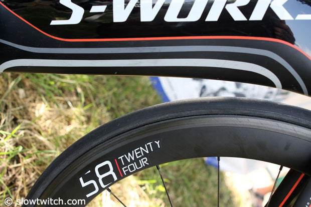 This S-Works Shiv is set up in the front with a Profile Design 58 Twenty Four.