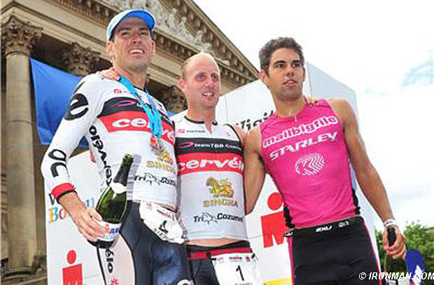 Atkinson combined a race-best 23:50 swim, the day’s fastest 2:12:38 bike split and a 2nd-best 1:18:40 run to hold off 2012 Ironman World Champion Pete Jacobs' race-fastest 1:15:37 half marathon. Atkinson finished in 3:58:07 with a 1:02 margin of victory over Jacobs and 4:15 over 3rd-place finisher David Dellow. Two-time Ironman World Champion Chris McCormack trailed Dellow by 53 seconds to make the men's race a 1-2-3-4 Australian sweep.
