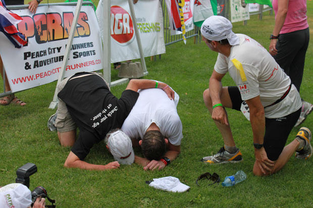 There were two other remarkable accomplishments on the day. Brian Dillon provided the last moment of drama for Ultraman Canada 2012, running to the finish just thirteen minutes ahead of the cutoff, and Alan MacPherson of Great Britain achieved the distinction of becoming just the sixth person to complete all three Ultraman races. He finished Ultraman United Kingdom in 2011 and the World Championship in Hawai’i in 2012.
