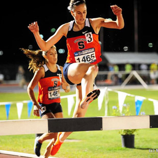 Katie: My last two years at Syracuse I asked my coaches if they would let me try it. I get bored pretty easily running around in circles on the track, so I thought that jumping over barriers might add some variety. It takes strong runners to compete in steeple and that is exactly how I would describe myself.