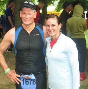 Katie: My mom was a runner in high school and college, but had two bad knees and had to give up running. However, this year she had both her knees replaced and her new goal is to compete in the first triathlon I ever did. My dad played contact sports in high school, basketball and football. But he too turned to triathlon the last five years. They are both great at their sports and I love to watch my parents set goals for themselves and achieve them!