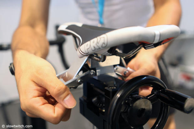 This is not the final clamp finish, but swapping out saddles is a breeze on the Shimano bikefitting.com system.