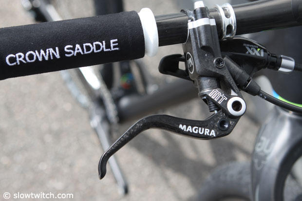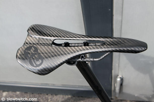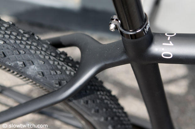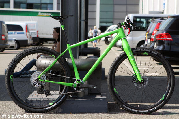 At the 2013 Eurobike show we spied this very sweet and crazy light Open O-1.0 with a funky prototype leaf blade suspension fork, and at 6.7kg just under the UCI road bike weight limit. The folks at Open call this one the LOLA Proto, and they also showed an even lighter bike with a solid fork at 6.4kg called the ORA LTD in a funky green color, but we really liked this suspended one.