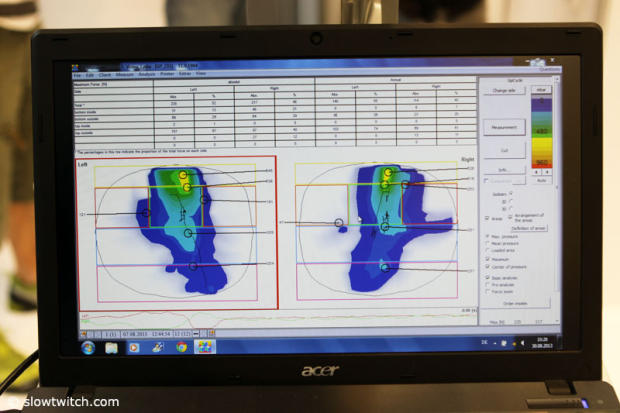 Action in the gebioMized booth where pressure mapping is done on the footbed and the saddle and now also on the arm pads. This German brand will also be at Interbike.