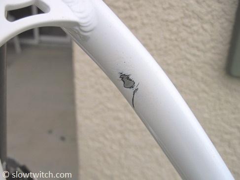 -Seat tube bottle cage mounts crooked; titanium frame (not the same frame as above). Sent back to be aligned