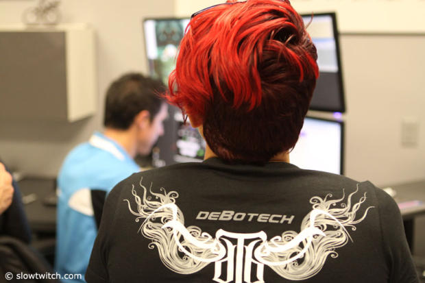 Head coach Tuffy Latour and Grant Schaffner of ProtoStar Engineering look on and take notes.