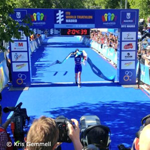 Jorgensen, after a great swim that should have left her in position to use her dominant run to win, crashed hard on the second lap of the bike leg. Although she got up quickly, her bike was badly damaged and she was unable to keep the pace and had to drop out. The disappointment was Jorgensen's second straight on the Hyde Park course as she met a similar fate 13 months ago at the London Olympics. Adding to her trauma, Jorgensen had been the second woman after Paula Findlay of Canada to have won 3 of the elite World Triathlon'/World Championship Series races in one year.