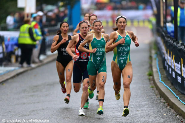 The leading front bunch in pursuit of American Sarah Groff and Brit Non Stanford.