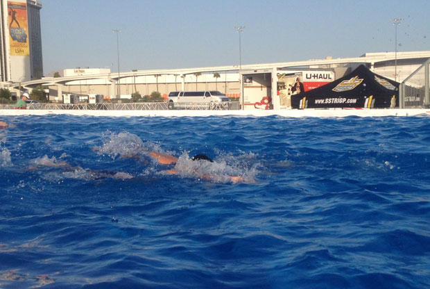Under the bright lights of Las Vegas Elite men and women battled for a $30,000 purse in the Aussie inspired Super Sprint Tri Grand Prix.