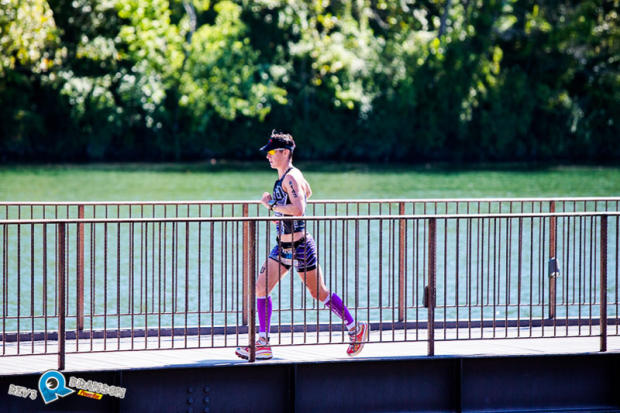 Rachel McBride managed to be first off the bike despite a 4:18 deficit after the swim.