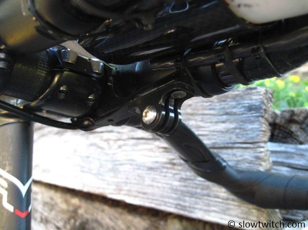 David rides with two Go Pro cameras at all times in training (one front, one rear). This K-Edge mount just barely fits between the stem face plate and Zipp Vuka Clip aerobar. David said that he was forced to ride with cameras constantly due to dangerous encounters with drivers that are sending text messages or not paying attention.