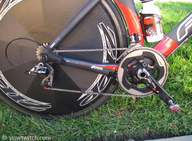 The bike has a full SRAM Red mechanical drivetrain with TT900 shift levers and a 175mm Red Quarq crank.