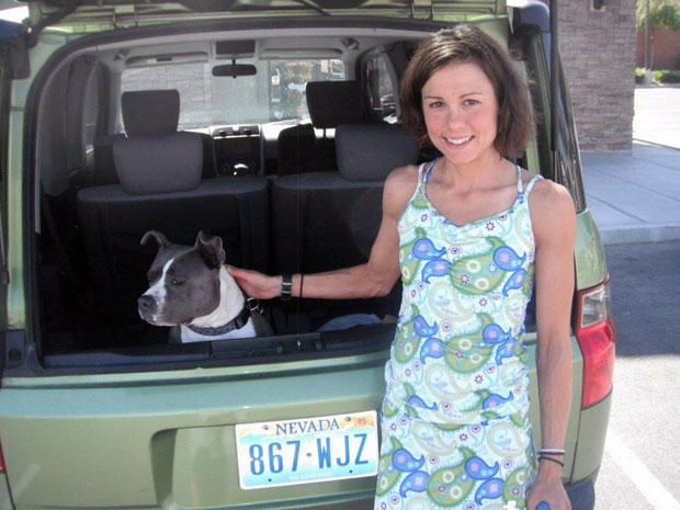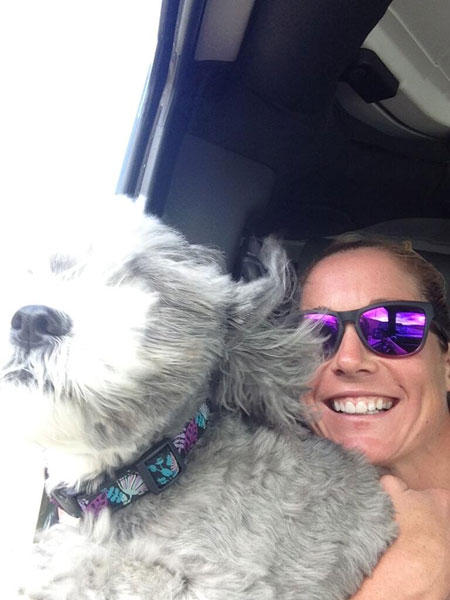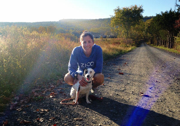 Bec Wassner with Maya, a 2-3 year old mix she got from Puerto Rico. Maya is reported to be a great runner.
