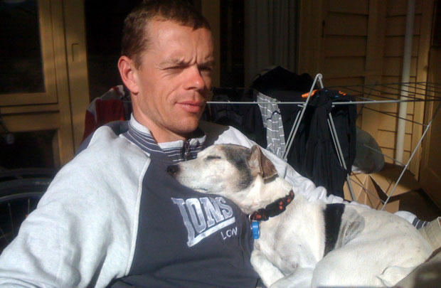 We are not quite sure who is more tired here, Danish Pro Jimmy Johnsen or his 12-year old Jack Russell Basil. There is also a 7-year old Jack Russell named Buffy in the household.