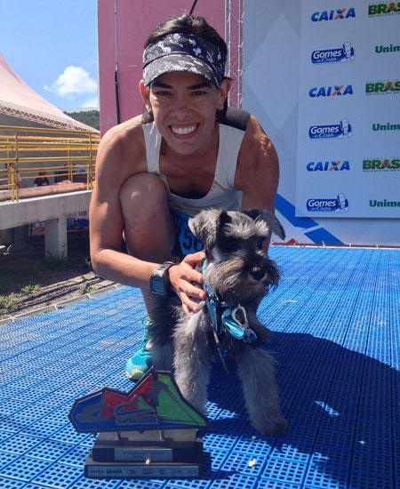 Ana Borba is a Brazilian long course athlete and here she is with Eisen, a 4 months old Schnauzer. Eisen is the German word for Iron.