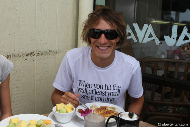 2-time Ironman 70.3 World Champion Sebastian Kienle will have many eyes on him, but here he enjoyed a quiet breakfast at Lava Java.
