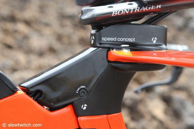 Up close with the integrated stem of the Speed Concept of Chris Legh.