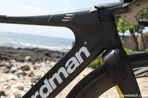 Chris Boardman is in Kona this year and he unveiled the new Boardman AiR TTE 9.8 race bike on which Ironman World Champion Pete Jacobs will compete this Saturday. We don't know the aero numbers of the previous 9.8 edition, but Chris Boardman hinted that this machine may be 20% faster.