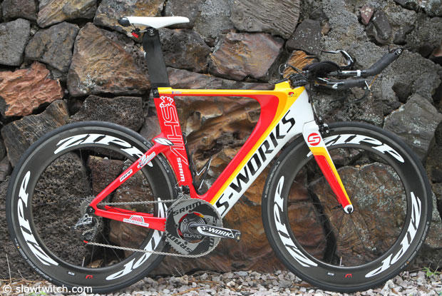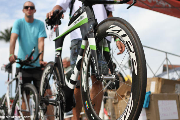 The very distinctive Trek Speed Concept of Dirk Bockel. It though seemed that he took off the draft box before he went in.