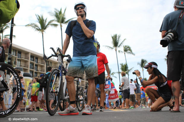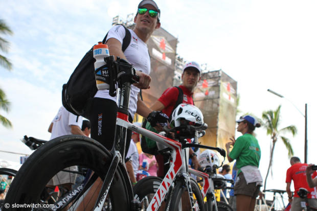 Sebastian Kienle and Luke McKenzie came to the check-in at the same time.