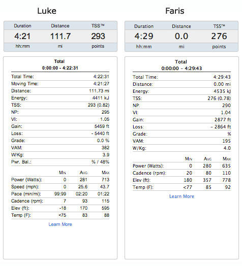 You can see the complete files of Luke McKenzie and Faris Al-Sultan on TrainingPeaks.com.