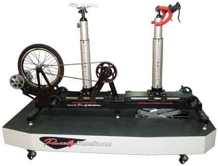 At first blush I did not understand this incline table. The only images I was were of bikes, on trainers, front wheels on the "scissor jack". I did not know that this also doubled as the incline table for the Purely Custom fit bike. I was disabused of my error when I saw this bike in action at the Interbike trade show. Bravo to the initiative and engineering of these clever folk at Purely Custom.