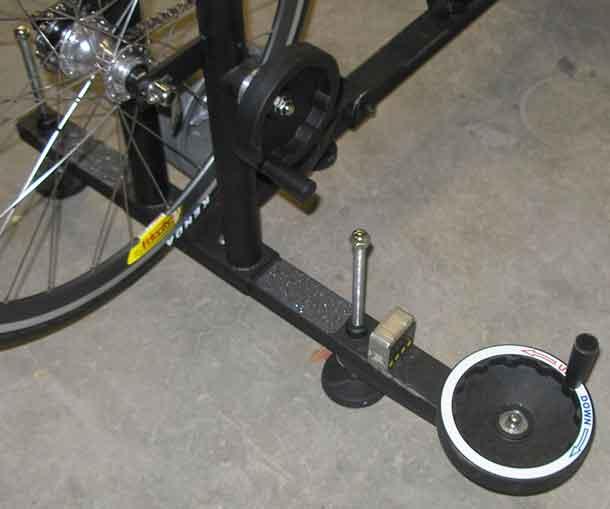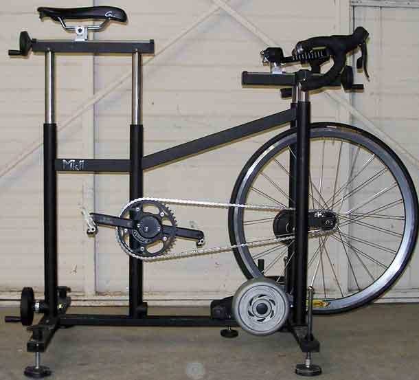 The Exit bike was the granddaddy of all these bikes. It was the first bike built to export stack and reach; the first to adjust front and rear in an x/y axis; the first with an incliner; and as far as I can remember the first x/y adjustable fit bike to use a Computrainer as a resistance unit. (The bike can be outfitted with either a Computrainer or a CycleOps Powerbeam as the resistance unit, this bike pictured here uses a Powerbeam.)