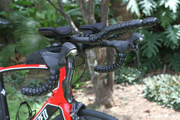 To make this bike less intimidating and versatile Specialized opted for road drop bars with a clip-on aero bar.