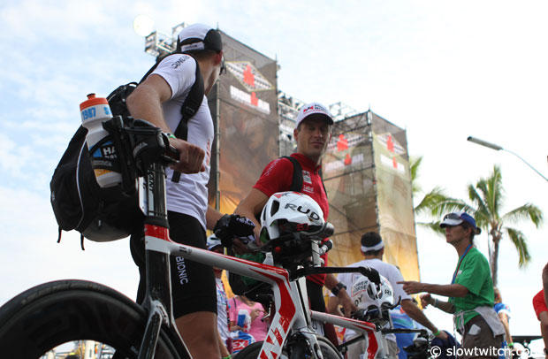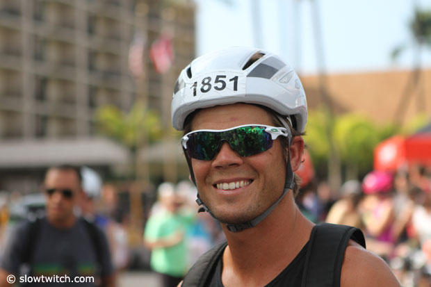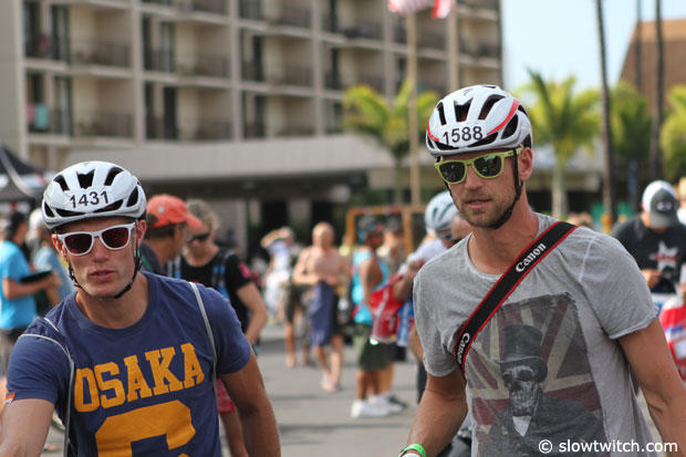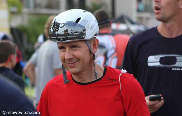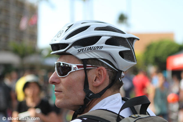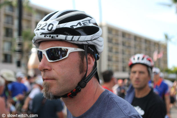 With two very big marketing campaigns in Kona it is not surprising to see Rudy Project leading the helmet count, but they are in fact part of an apparent trend that less is enough. Long tailed helmets are now part of a disappearing species, and aero road helmets seemed to be especially popular, or at the very least trending.
