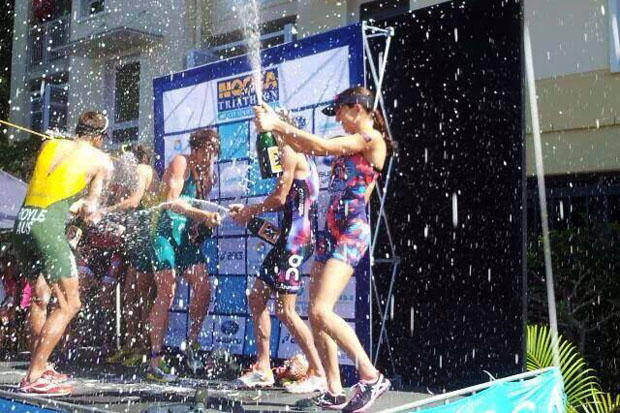 Michelle Wu of Australia, the 2010 and 2011 winner of this race, combined a race-best 23:30 first run, a 2nd-best 2:30:30 bike split and a women’s race-best 1:32:44 final run to finish in 4:28:13 with a 7:42 winning margin over runner-up Kate Bevilaqua of Australia and 9:43 over Australian star Belinda Granger, who took the final spot on the podium.