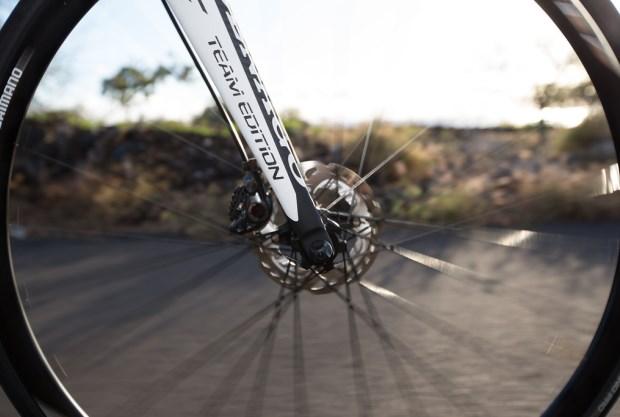 I’ve heard some different numbers thrown around as to what this penalty actually is, but I don’t have enough information to publish a definitive statement about the exact drag increase. This is clearly an area that we need to learn more, and will likely be the deciding factor for whether or not disc brakes make it onto triathlon bikes or serious road race machines.