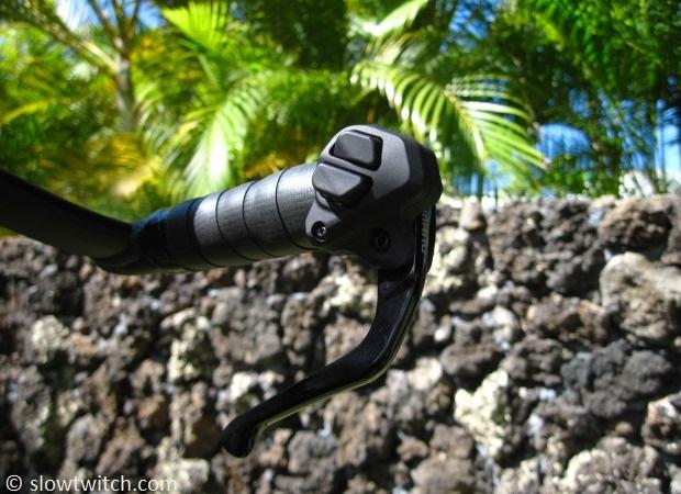 The shift buttons feature the new larger and longer size, similar to the latest Dura Ace and Ultegra Di2.
