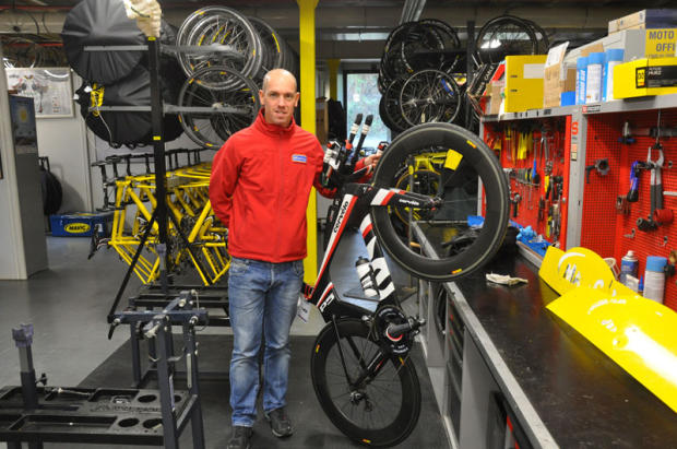 Posing with the Cervelo P5 of Frederik Van Lierde.