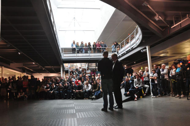 There won't be any riding here but Frederik brought his bike as it will be displayed here.