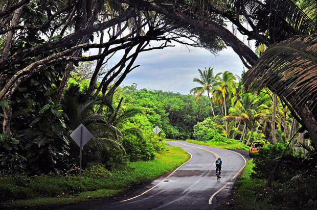 The apogee of beauty on the southern seaside section known as the Red Road for the crushed red volcanic rock that has sadly been paved over. Worse, race organizers abandoned this exquisite spot in favor of a boring section a hundred feet inland.