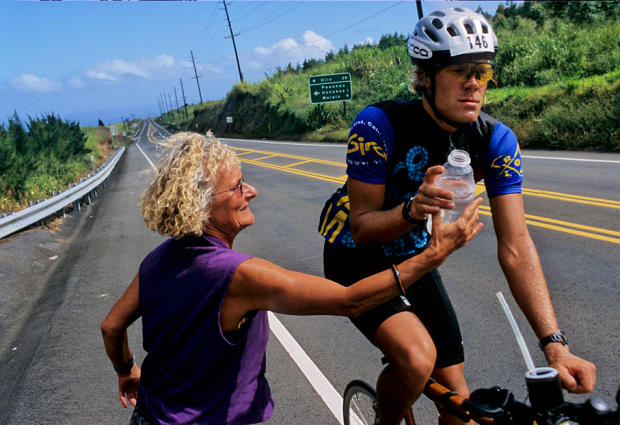 Holger Spiegel’s mother hands him a water bottle during the Day 2 bike in 1998. Spiegel set a still-standing men’s race record of 21:41:22 that year, which withstood a 21:41:49 challenge by Jonas Colting in 2004.