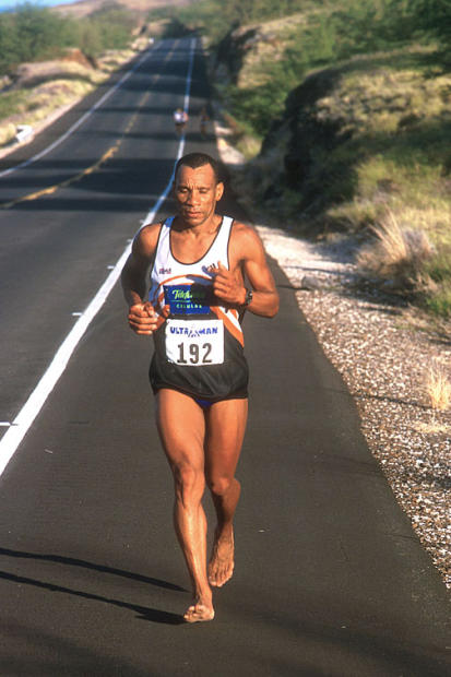 Eric Seedhouse of Great Britain ran a second fastest 6:22:50 run on the final day of the 1998 Ultraman. Seedhouse, who won in 1996 and placed second to Peter Kotland in 1997, was second this day.