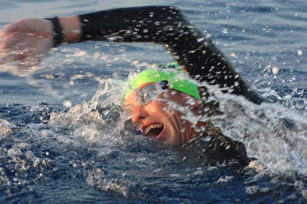 Intense moment during the 10 kilometer swim from the Kailua Pier to Keauhou Beach on Day 1 in 2011.