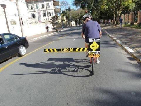 Most of us would be beyond happy if the 3 foot law in many US States would actually be respected and enforced, but that is just not so in many cases. Manny Huerta recently tweeted the pic below from Sao Paulo, Brazil where law 201 requires motorists to keep a distance of 1.5 meters or just under 5 feet from a bicyclist. But the law is apparently also not enforced so cyclists have come up with their own solution for awareness.