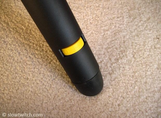 The yellow portion rotates to extend the silver threaded piece. There are indents that you can feel as it tightens down. It’s almost impossible to over-tighten; the yellow paddles are relatively short to limit the leverage you have.